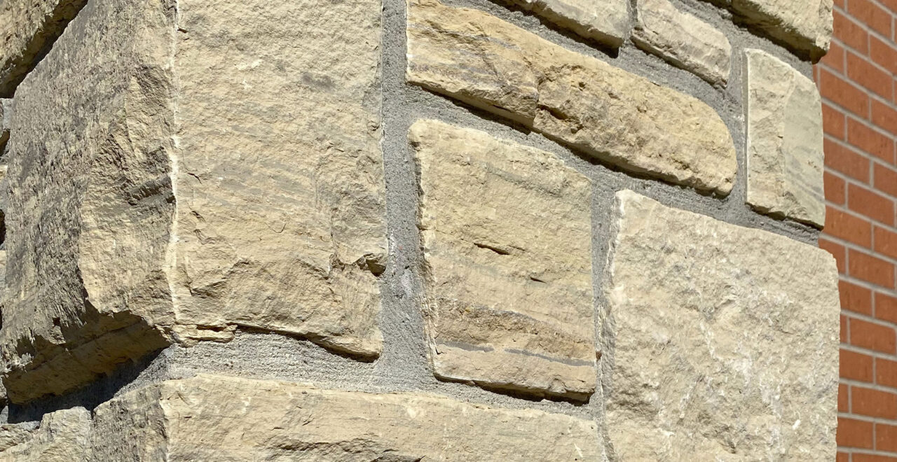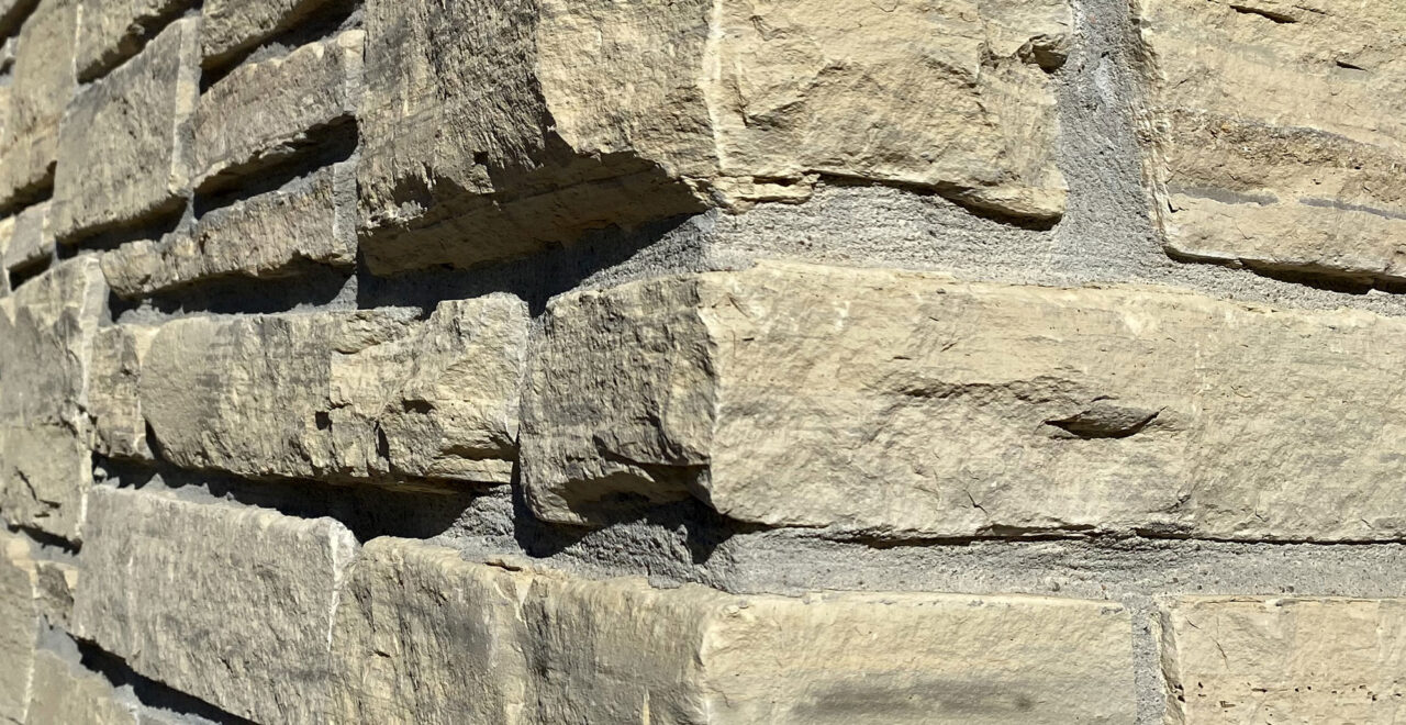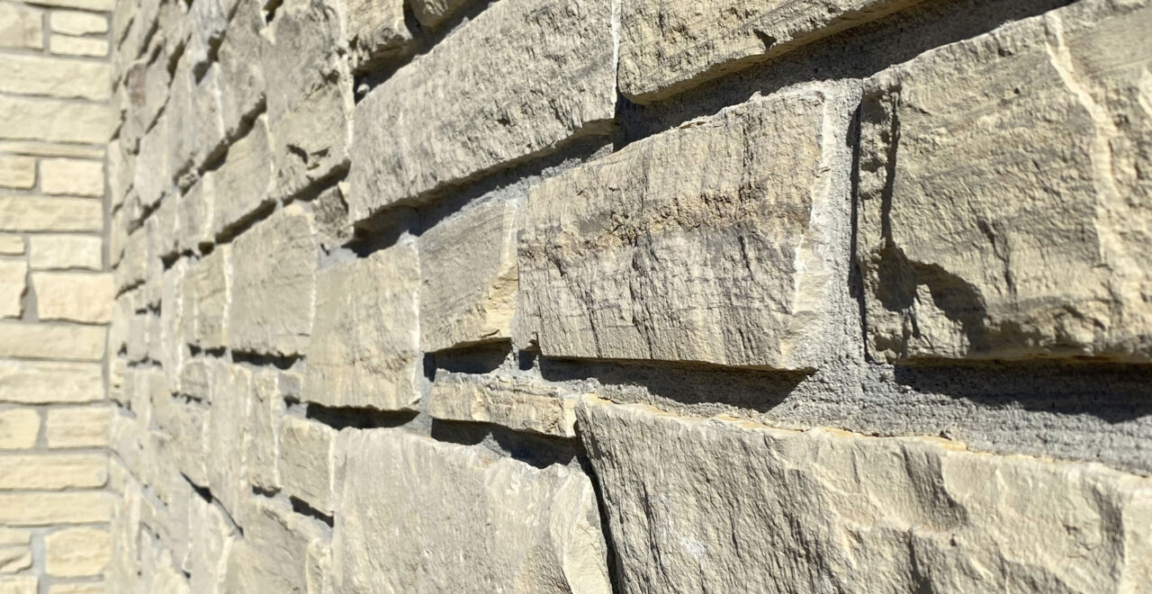Jute Cloth Country Squire (spec sheet) full stone veneer or thin stone siding / stone cladding brings arctic natural stone color tones to our Ashlar Line of Building Stone Veneers. Ashlar describes the finest masonry units of dressed and cut stones that are worked until squared. Capable of thin joints between stones, the linear appearance of an ashlar pattern stone installation results in the most traditional natural stone masonry application. Pieces range in heights from 1/2″ to 8″, with lengths from 6″ up to 42″ for full veneer stone and 6″ up to 24″ for thin stone veneer. Its natural stone color range includes light grays to buffs with occasional blue veins.